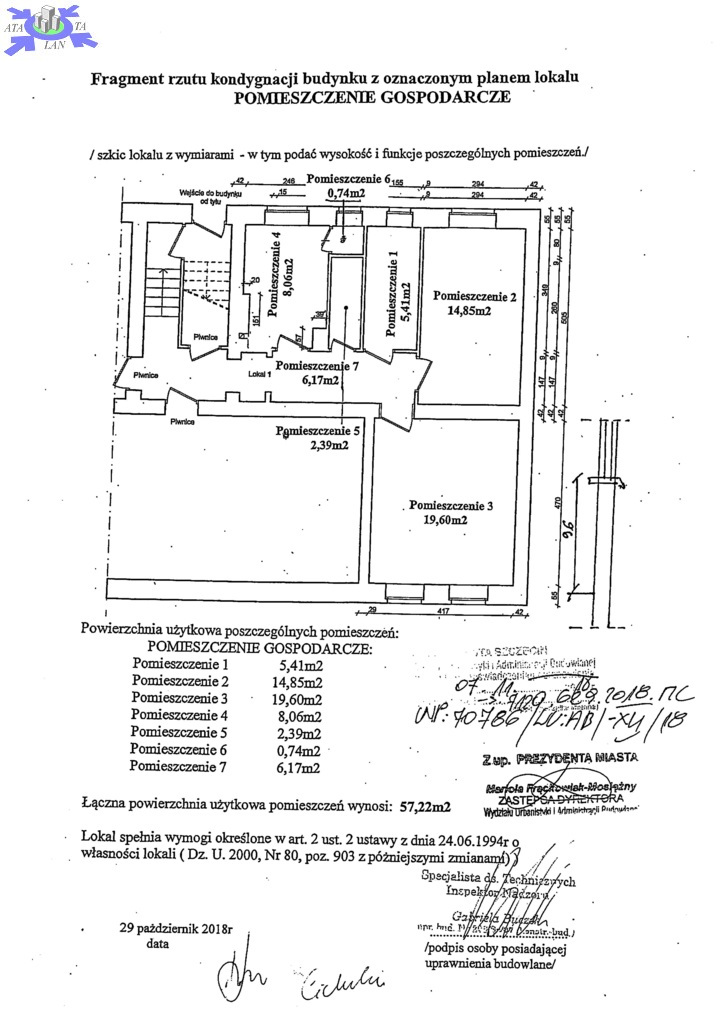Ofertą sprzedaży jest lokal niemieszkalny, w przyziemiu budynku mieszkalnego, przygotowany do adaptacji na lokal usługowy o powierzchni 57,22 m2.