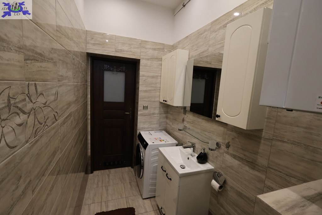 - łazienka z w.c. , kabiną prysznicową, umywalką, pralką,