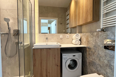 W mieszkaniu użyto najwyższej klasy materiałów oraz zastosowano nowoczesne rozwiązania ułatwiające życie, dające duży komfort zamieszkania.