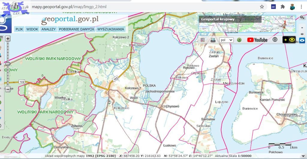 Dla działki brak jest miejscowego planu zagospodarowania przestrzennego. Studium kierunków zagospodarowania gm. Wolin, Uch.XL/418/06 z 21.10.2006, działka leży częściowo na terenie przeznaczonym na cela rolne i częściowo w strefie rozwoju funkcji rekreacyjnej- teren wskazany do opracowania miejscowego planu zagospodarowania terenu.