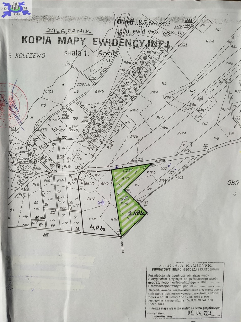 Nieruchomość gruntowa niezabudowana położona w miejscowości Rekowo, gmina Wolin, powiat kamieński, woj. zachodniopomorskie . Grunty orne o łacznej powierzchni 2.4752 ha. W skład wchodzą grunty orne, tj RIII b - 0.4620 ha, RIVa - 1.2506 ha, RIV b - 0.7626 ha. Działka posiada brezpośredni dostęp do drogi publicznej i jest niezabudowana.