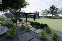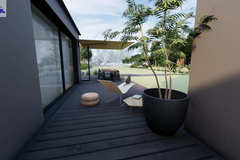 Taras (80m2) Wykonany z drewna opalanego metodą Shou Sugi Ban.