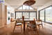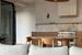 Kuchnia i Jadalnia Otwarta kuchnia z zabudową wykończoną naturalnym dębowym fornirem. Blaty, fartuch oraz dedykowane miejsce kawowe wykonano ze szlachetnego włoskiego marmuru Breccia Capraia.