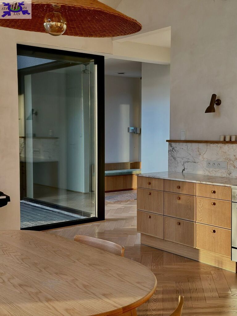 Bezpieczeństwo Wewnętrzny system CCTV z rejestratorem, system ochrony SOLID, automatyczne żaluzje zewnętrzne aluminiowe z ukrytą kasetą.Stolarka okienna W całym domu zamontowano energooszczędne, 3-szybowe okna aluminiowe (w tym wielkoformatowe przeszklenia tarasowe). Zostały one wyposażone w automatyczne żaluzje zewnętrzne z estetycznie ukrytą kasetą.