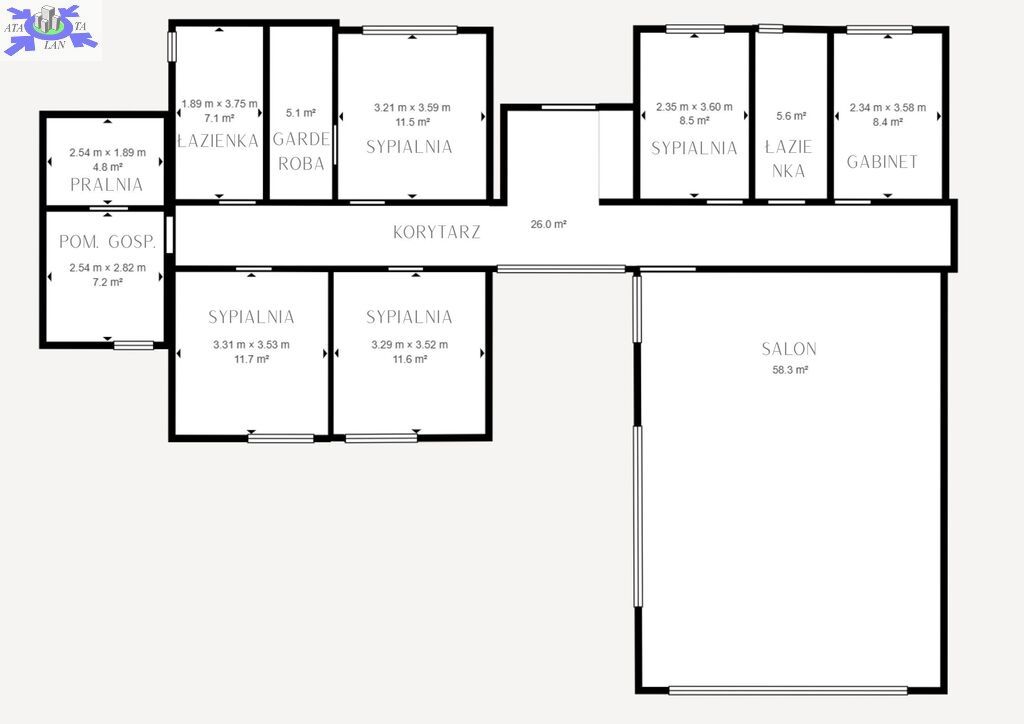 4 ustawne sypialnie.