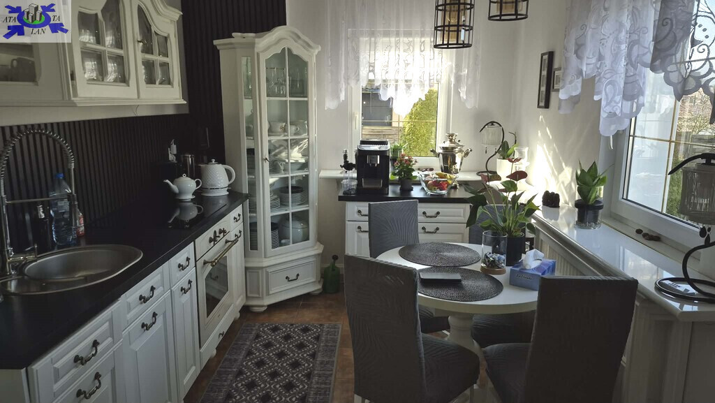 Dom wolnostojący położony w drugiej linii zabudowy w Gryfinie przy ul Szczecińskiej. Nieruchomość wybudowana ok 20 lat temu na ładnej działce z garażem. Dwie pary drzwi prowadzą nas do holu. Po prawej stronie jest kuchnia, łazienka, z lewej znajduje się przepiękny salon. Z salonu jest przejście do "części prywatnej", gdzie jest przedpokój z niego jest przejcie do 2 pokoi ( każdy po ok 15 m2) i pomieszczenia gospodarczego. Tutaj znajduje się również wyjście na zadaszony taras. Dom jak i otoczenie jest bardzo starannie utrzymany. Widoczna jest dbałość gospodarzy o każdy szczegół zarówno wewnątrz domu jak i otoczenia. Nowi właściciele nie będą musieli nic robić. W cenie pozostaje niemal całe wyposażenie poza częścią mebli z salonu. Ogrzewanie kominkowe ma rozprowadzony system grzewczy do wszystkich pomieszczeń. ciepła woda jest podgrzewana elektrycznie. Jest możliwość zmiany ogrzewania na gazowe.Teren posiada liczne nasadzenia, wszystko zadbane, tworzy miejsca odpoczynku dla gospodarzy. Altana, w której przechowywane jest drewno, 2 pomieszczenia gospodarcze, miejsce na grilla, wszystko daje komfort życia dla mieszkańców. Bliskość sklepów, kina, komunikacji zarówno autobusowej jak i kolejowej to dodatkowe atuty. W Gryfinie znajduje się przejście graniczne z Niemcami. Termin wydania nieruchomości do uzgodnienia. Oferta na wyłączność.