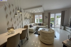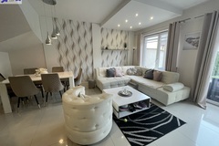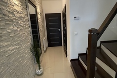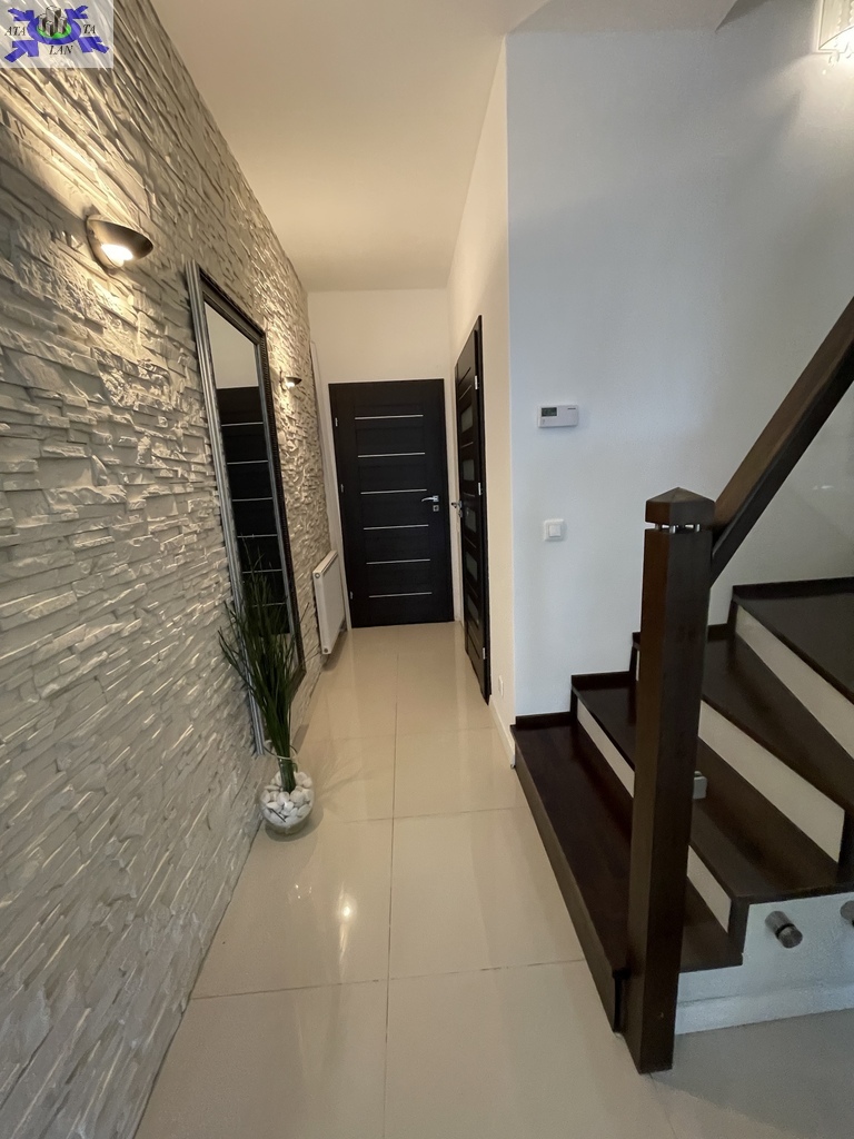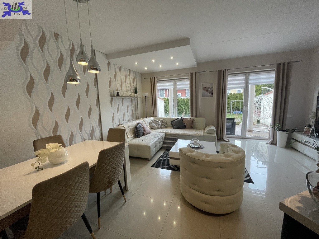 Wykończony wysokiej klasy materiałami, dwu poziomowy, z garażem w bryle i dużym ogrodem.