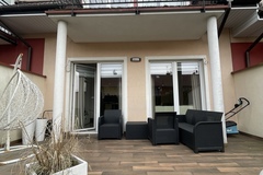 -salon z aneksem kuchennym i wyjściem na taras,