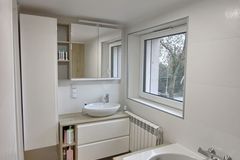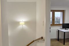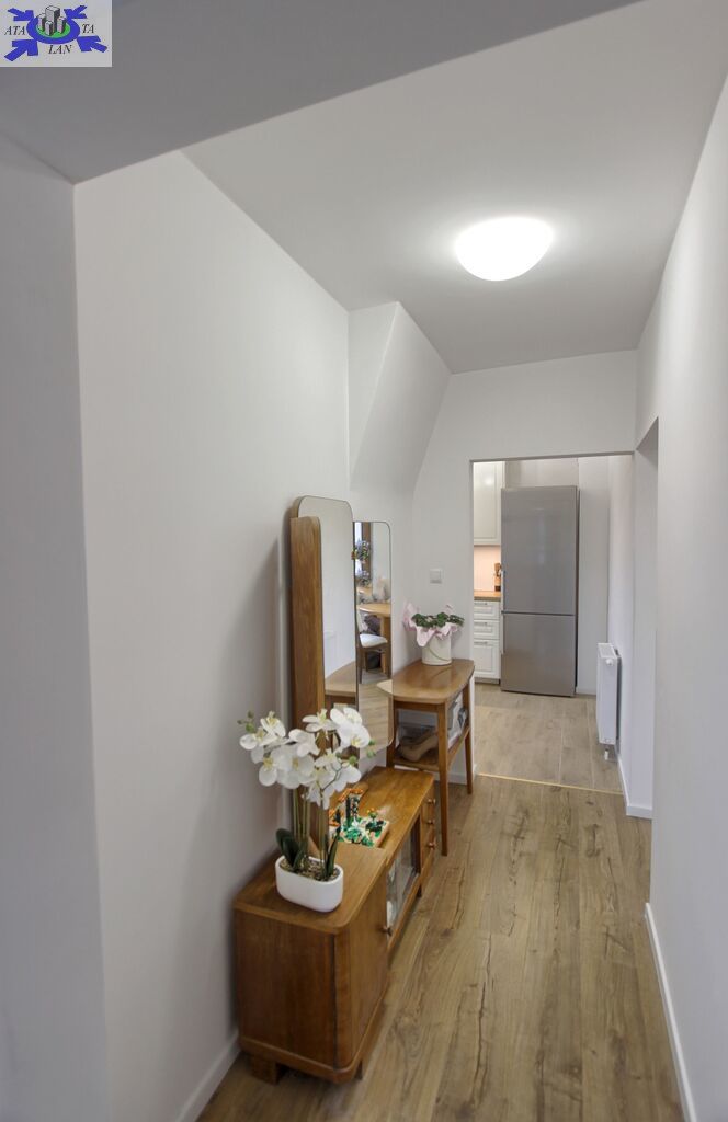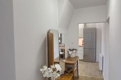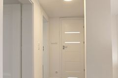 Na podłogach panele oraz kafle, ściany gładzone, pomalowane na biało.