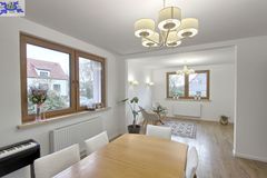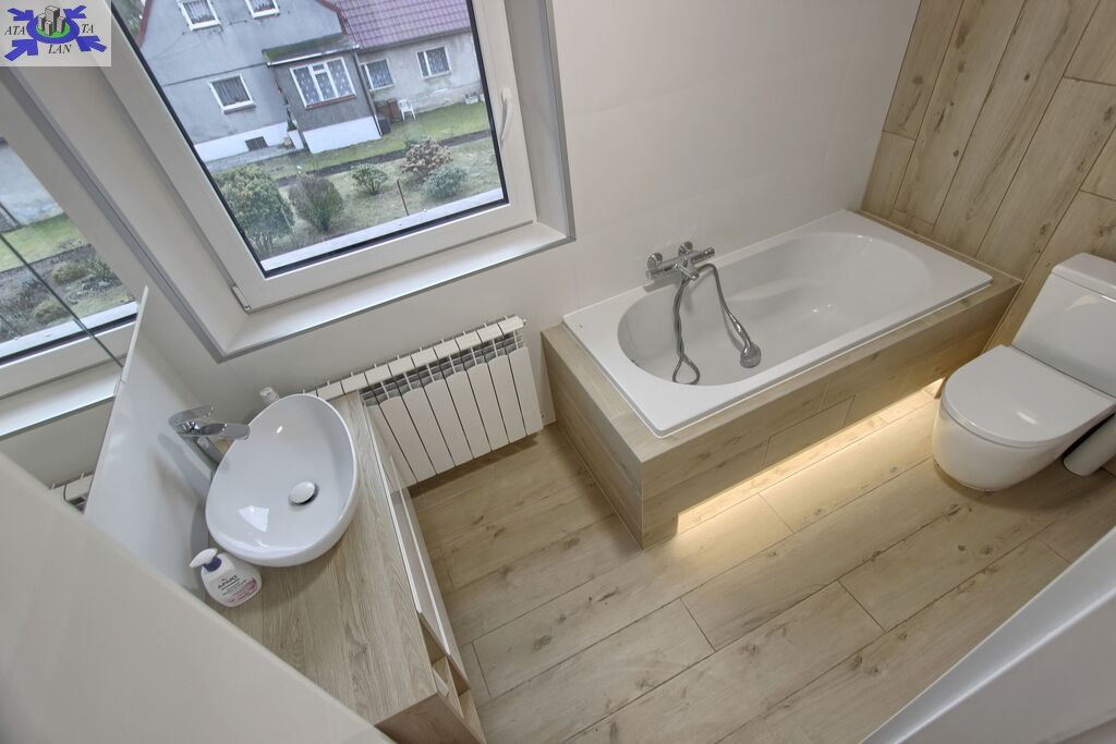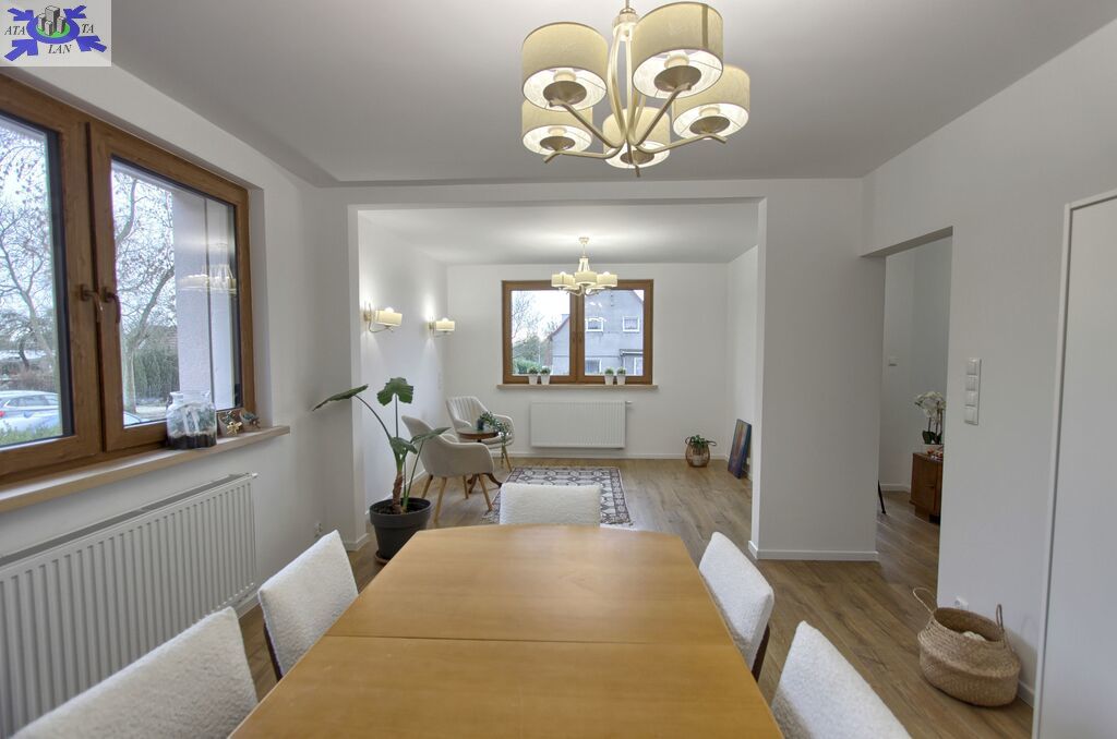 Dom jest po remoncie. Zostały wymienione okna (okna 3-szybowe PCV, parapety drewniane, rolety zewnętrzne antywłamaniowe, moskitiery w oknach), wszystkie instalacje (wodno-kanalizacyjne, elektryczne, grzewcze), budynek został docieplony (20 cm styropian), a poddasze ocieplone wełną.