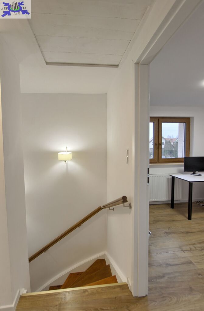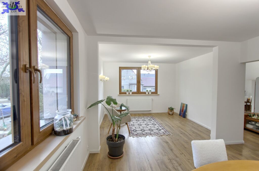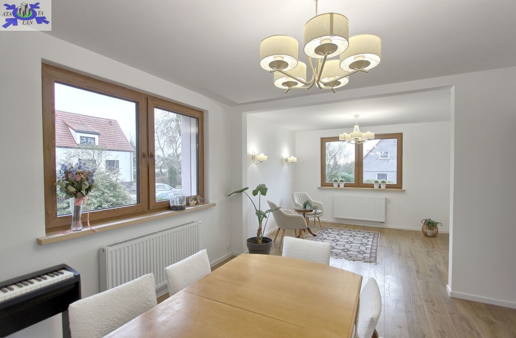 Dom jest jasny i bardzo dobrze doświetlony, gotowy do zamieszkania.