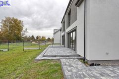 Taras, chodniki wokół budynku, wjazd i dojście do budynku z kostki betonowej typu Polbruk"