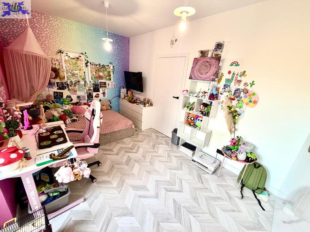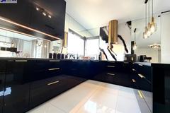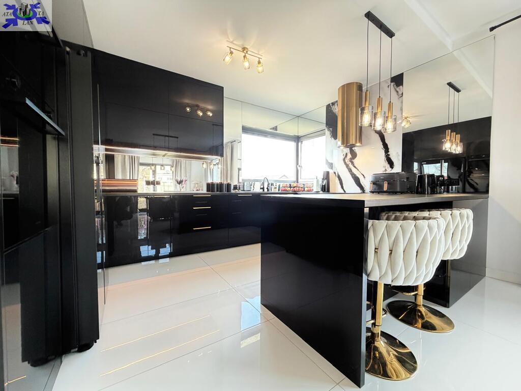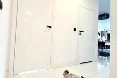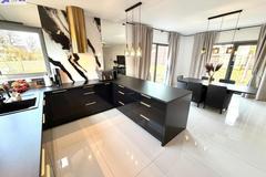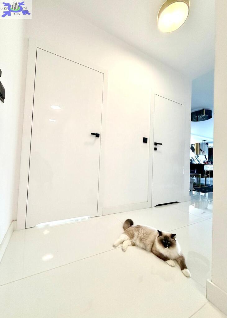 Rozbudowana stolarka wewnętrzna w postaci zabudowy kuchennej, zabudowy szaf w sypialni, garderobie i korytarzu.