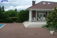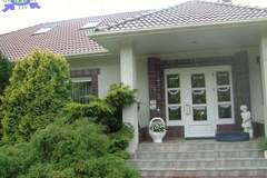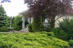 Dom posadowiony na dużej 2800m2 działce obsadzonej 3 tysiącami drzew i krzewów w tym 70 letnie cedry i świerki. Przy domu podgrzewany basen o wymiarach 6x 10 m i 1,5 m głebokości. W dalszej części ogrodu miejsce na grill,na podjeździe zadaszone 2 miejsca parkingowe.