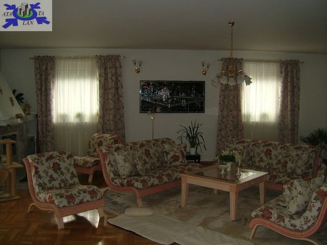 Na parterze hall, przedpokój, 5 sypailni , dwie łazienki , przestronny salon z kominkiem z wyjściem na taras, barkiem , jadalnia i kuchnia.